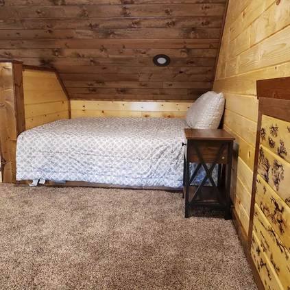 This cabin may not be suitable for young children. The stairs to the sleeping loft are steep, like a ladder, so young children must be monitored closely. The space downstairs is suitable for most ages and abilities.
